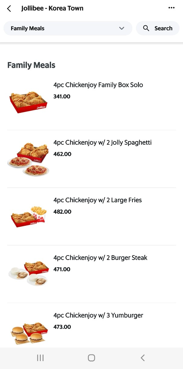 패밀리 메뉴로 대용량으로 판매도 하는데 일반적인 1인용 단품의 경우 코로나 이전에는 모든 메뉴들이 200페소 한화 약 5000원을 넘지 않았습니다. 스파게티, 버거스테이크, 치킨, 밥, 그레이비소스, 음료가 모두 들어가 있는 슈퍼밀 메뉴가 거의 200페소 정도였고 대부분의 메뉴는 100페소에서 150페소 사이의 메뉴였는데 코로나 이후 물가가 오르면서 약 20페소 한화 약 500원 정도가 인상되어 200페소를 넘는 메뉴들도 생겼고 대부분의 메뉴들도 100페소 후반대 가격이 되었습니다. 졸리비가 워낙 유명하고 많은 사람들이 이용하는 만큼 가격 인상의 폭이 확실히 느껴지는 부분이라고 할 수 있습니다. 가격을 보게 되면 전체적인 가격은 저렴해 보이지만 치킨 조각 당 가격을 한국과 비교해보면 한 조각에 한화 기준 2000원 정도이기 때문에 결코 싸다고는 할 수 없습니다.